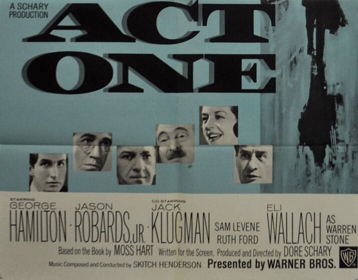 Highly enjoyable and surprisingly good. Could be viewed as a companion piece to Two Weeks in Another Town (1962), swapping movies for Broadway. I have to confess I had only seen the writing team of George S. Kaufman and Moss Hart in the context of movies – Frank Capra’s Oscar-winning You Can’t Take It With You (1938) and The Man Who Came to Dinner (1942). I hadn’t realized these had begun as plays and the movie tells the story of the beginning of their partnership when Kaufman was an established playwright and Hart a neophyte.