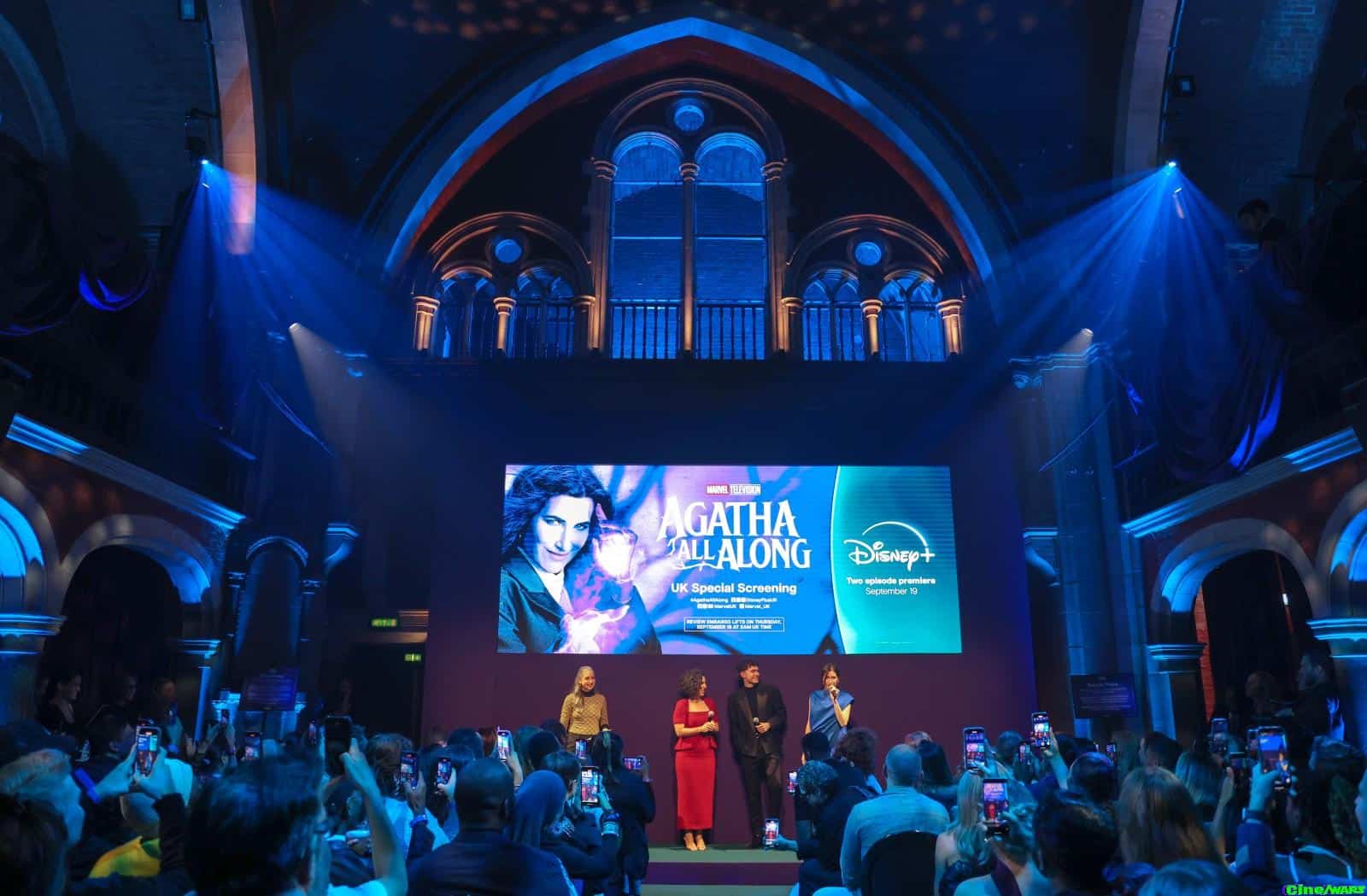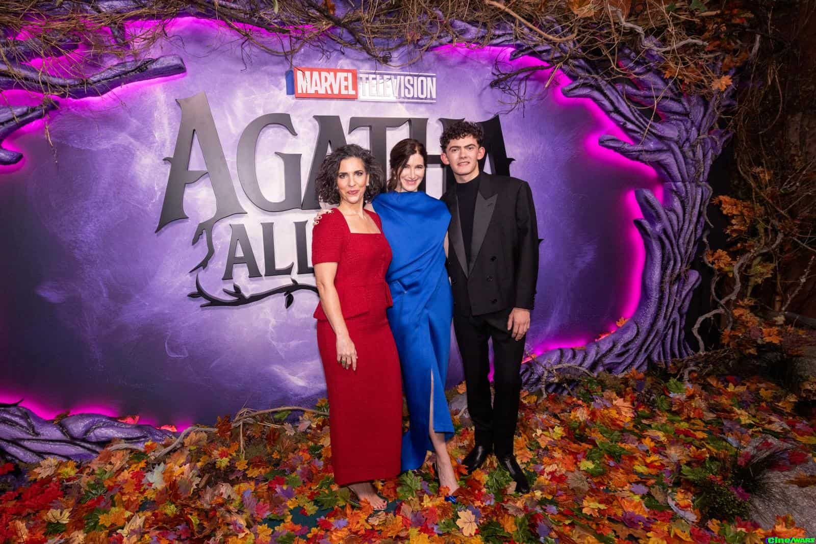 [Tuesday 10th September] Disney+ released photos from this evenings’ U.K. screening event held at Stone Nest, a Grade II listed former Chapel in London, for the upcoming Marvel Television live-action series, “Agatha All Along”. Stars Kathryn Hahn and Joe Locke, and Head Writer/ Director/ Executive Producer Jac Schaeffer were on hand to greet guests at The Witches Road-themed, immersive event that included a tarot reader and cosplayers mingling with the guests and celebrities.